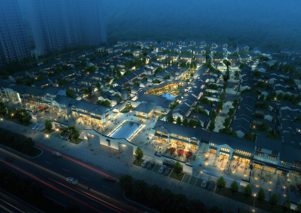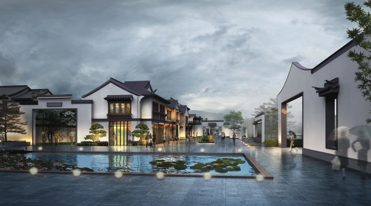 中式商业空间:借鉴传统中式商业形态,通过差异化的建筑形体,营造余味独特的商业空间。