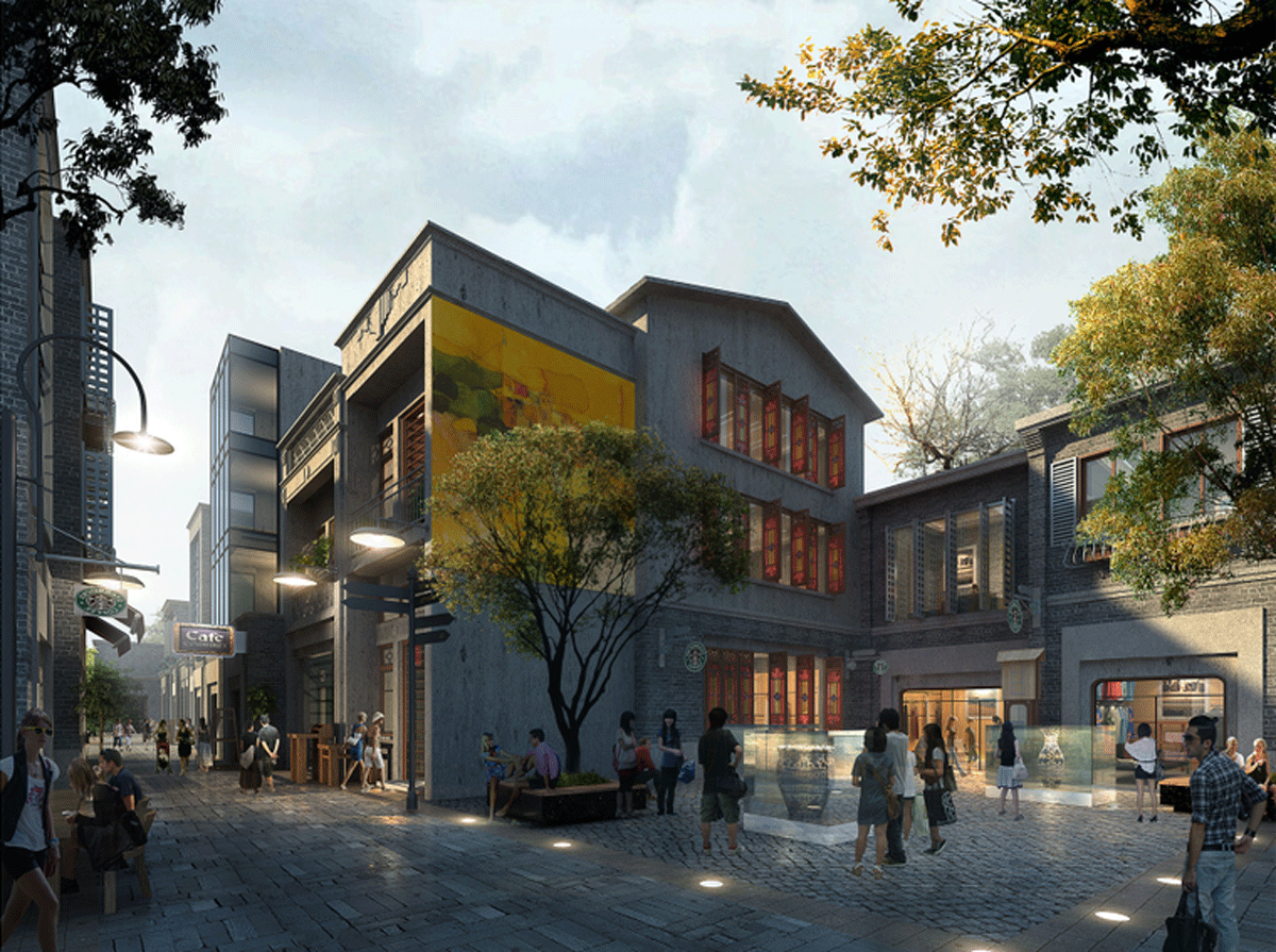 设计上营造南面主入口广场,及室外展场两个主要的公共空间。然后通过综合整治,提升街区整体风貌,恢复民国时期的建筑风格,延续城市脉络。