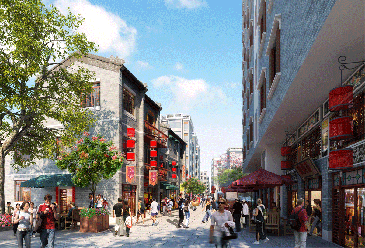 小东门桥片区地块沿街骑楼商业建筑及关帝庙旧址体现民国初期广州街区历史风貌,是原著名老字号酒家“永利酒家”所在地。规划设计根据历史照片与相关资料恢复“关帝庙”;调整已有沿街骑楼商业建筑部分功能,恢复“永利酒家”,唤起“历史记忆”。