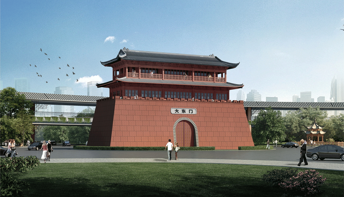 大宸设计利用大东门遗址和地下墙基等历史资源,在中山北路北侧地块建设“广州城市历史文化展览空间”,恢复大东门文化地标形象。