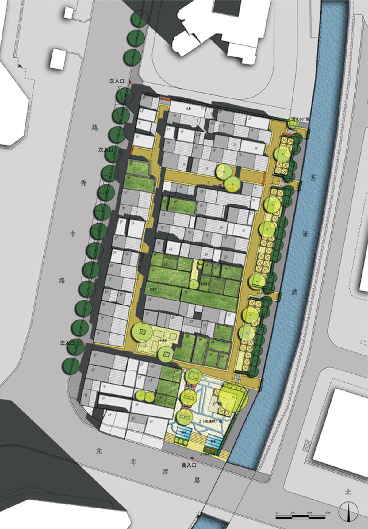 依托东濠涌自然景观与历史人文资源,综合展现广州古城历史文化,探索城市旧区保护、利用与项目维护互动发展的新模式,构建可持续发展、多元化、复合型的“东濠涌历史文化风情带”。