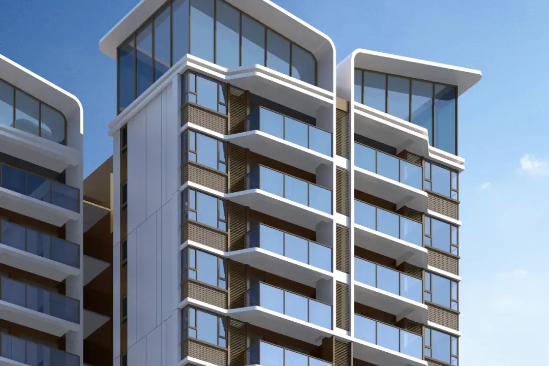 项目设计采用现代风格,简洁大气,气度非凡。立面设计选用通透纯粹的立面窗形成光洁时尚的高档气质,白色的线条勾勒出典雅个性。建筑顶部特意设计的飞翼与弧形元素结合,表露尊贵豪华的格局。建筑基座以时尚的商业界面与塔楼顶部造型呼应,上下浑然一体,彰显住宅小区生活品质,为开平市重新定义人居新标杆。