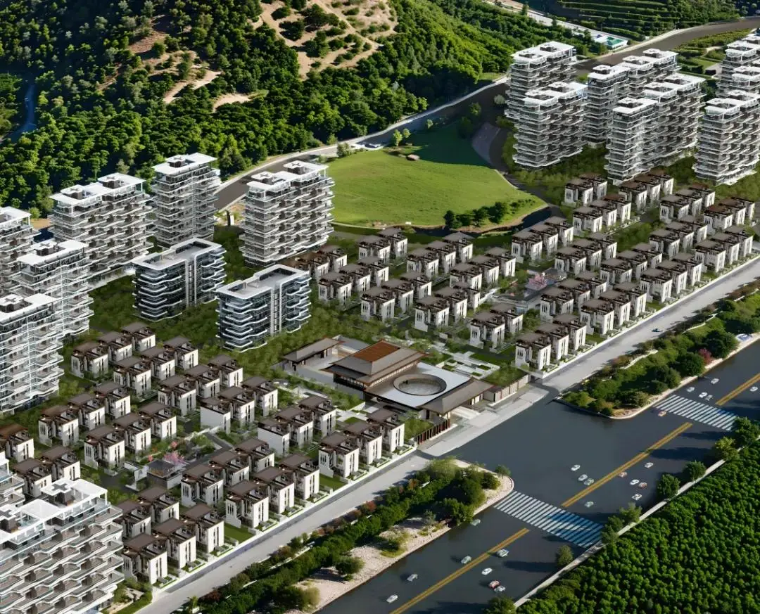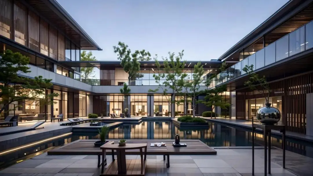 三重院落,重塑东方居住礼序。府门仿宋式棂星门设计,青瓦飞檐,彰显归家仪式感;庭园运用“移步借景”手法,通过假山、流水、花窗营造“虽由人作,宛自天开”的意境;合院别墅独门独户,前庭植芭蕉,后院种修竹,再现“榆柳荫后檐,桃李罗堂前”的雅居生活。