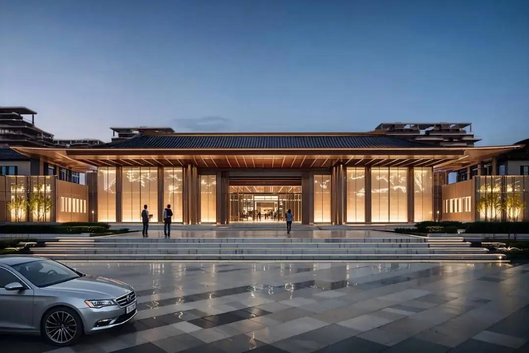 建筑采用现代极简风格,融合宋代“三段式”立面风骨。基座深色石材奠定沉稳基调,隐喻“山之厚重”;大面积玻璃幕墙搭配金属格栅,虚实相生,如“云影徘徊”;屋顶设计致敬宋式庑殿,檐角微翘,轻盈灵动。