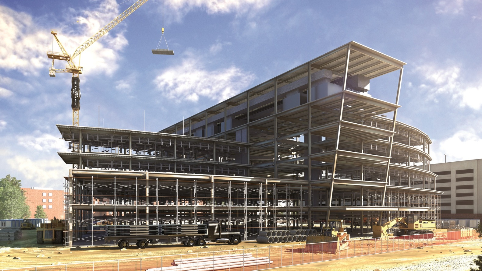 2)施工场地的布置模拟,施工时,参与方有很多的,这个设备放在工地的哪个地方,什么时候进入工地,都是要提前决定好的。不然里面全是卡车,都不知道怎么玩了。