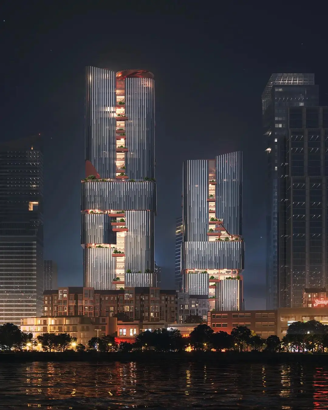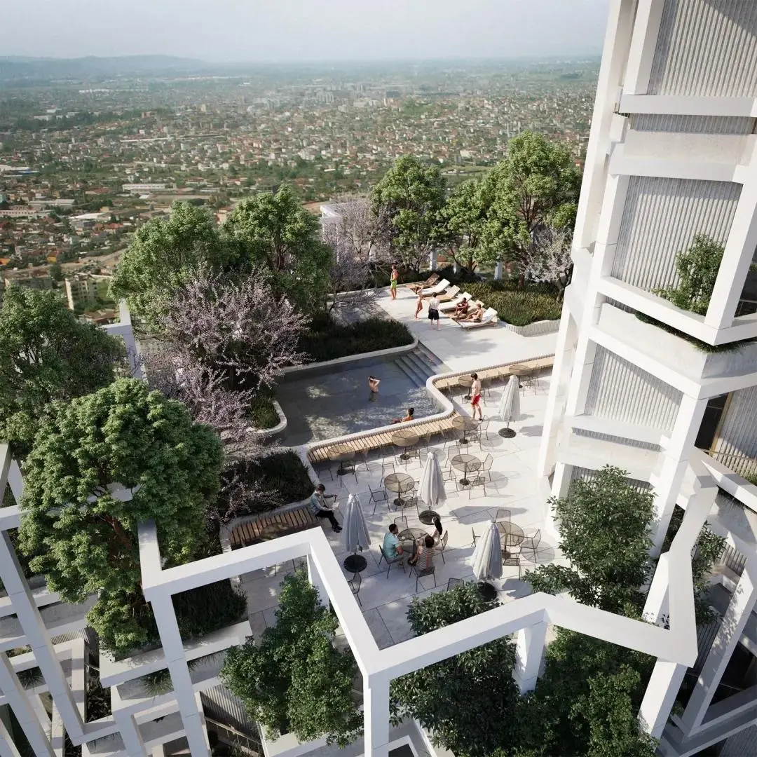 受阿尔巴尼亚山脉的启发,建筑周围的公共和绿地旨在鼓励对话。建筑最高达50层,占地50000多平方米,将住宅、商业、办公和酒店空间融为一体,反映了这座城市充满活力的城市生活。