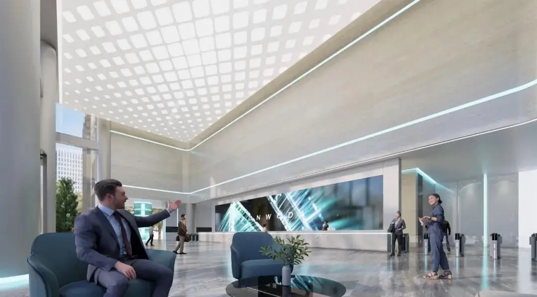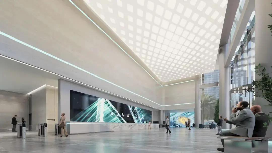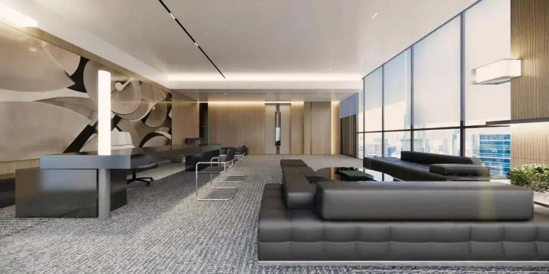 办公区以智慧纽带为设计元素,以环境通透与采光为核心,采用现代简约的设计风格,运用大面积落地玻璃,打造明亮通透的办公环境。同时,我们注重动线规划、空间体验、可持续发展,创造了一个既满足工作需求又能激发创新思维的环境。