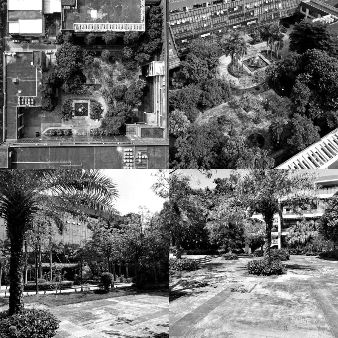 项目为典型的产业园旧改项目。在原始场地中,设计团队将林、池、道等空间记忆点提炼,使其以全新的面貌呈现在新的空间中。疏林理水,铺石植绿,营造雅致园区。