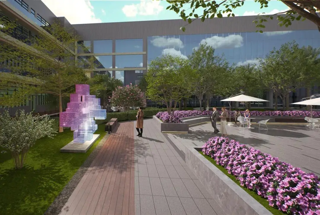 景观设计致力于打造来客可观可游、员工可憩可留的特色文化产业园区。办公闲暇或者午休时分,可以散步舒活一下筋骨;抑或来一场轻松的散步会议,为工作注入自然的活力。