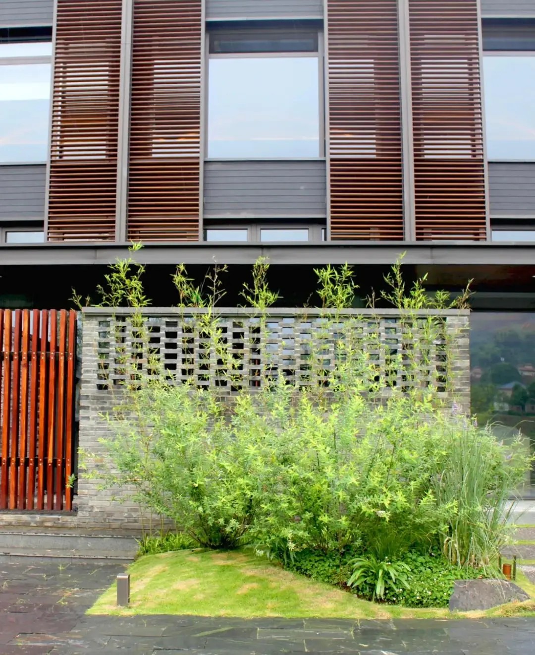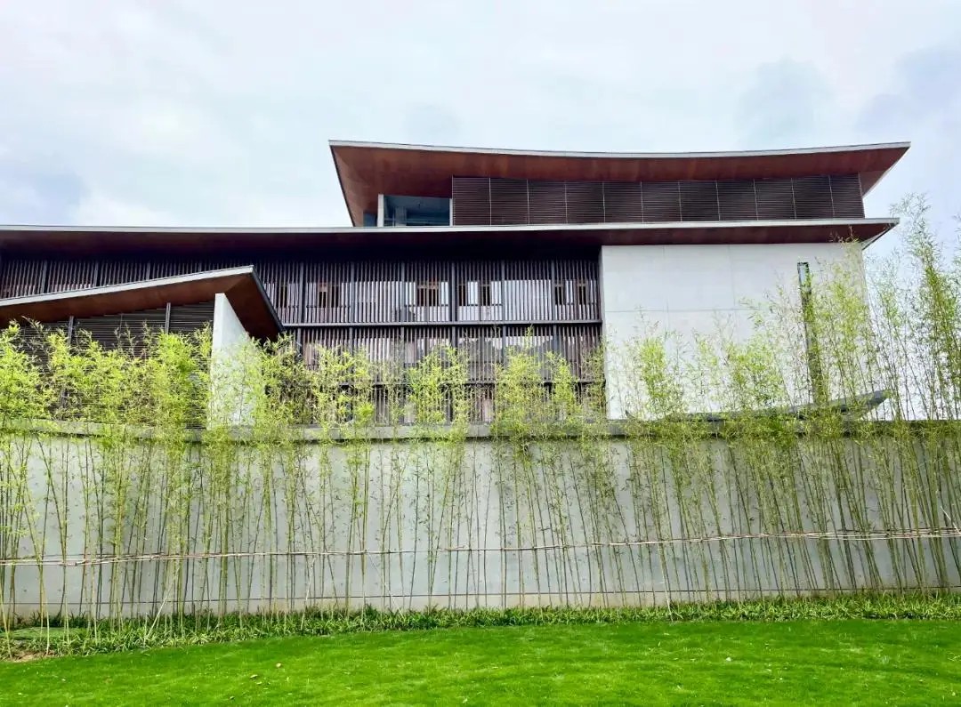 设计取意“湘南水乡”风骨,将传统民居的雕花窗棂、水磨青砖等元素解构重塑,既存古韵又赋新形;格栅式漏窗巧借绿影婆娑,框住四时风光。