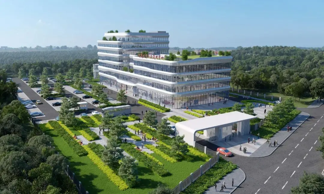 建筑形态通过横向线条的连接和秩序美感,来达到视觉愉悦的效果。立面材料以铝型材和通透玻璃组合,营造透明高效的智慧城市运行管理中心形象。整体效果不仅给人优雅动感的视觉冲击力,而且很好地扮演着区域地标的角色。